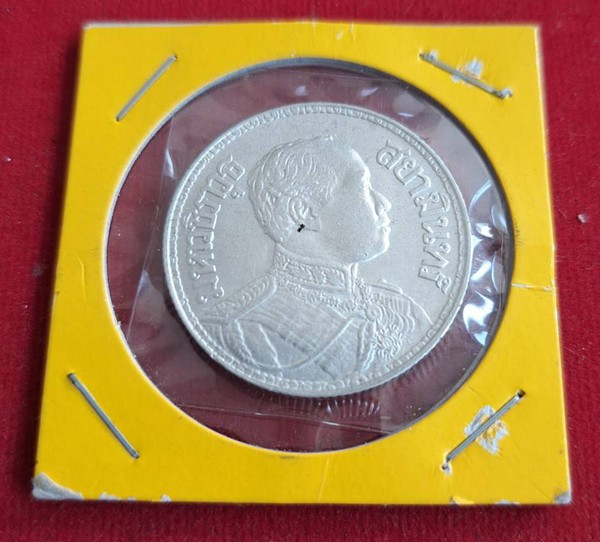 เคาะเดียวแดง เคาะเดียวแดง เหรียญ ร.5 บาทหนึ่ง เนื้อเงิน น้ำหนัก 15.06 กรัม ไม่มี ร.ศ. |