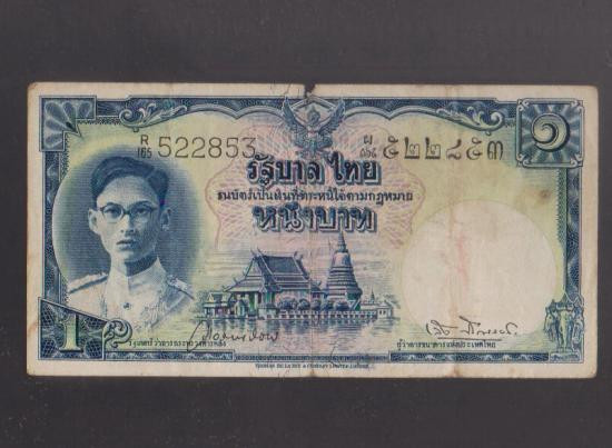 ธนบัตร 1บาท โทมัส ร.8 เลขแดง พ.ศ. 2479 ลายเซ็น พระยาไชยยศสมบัติ ลายน้ำช้างสามเศียร |