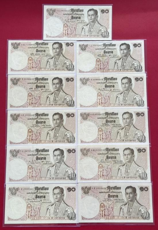 ธนบัตร 10 บาท แบบ12 จำนวน 9 ใบ เลขเรียง 2 ชุด ไม่ผ่านใช้ |