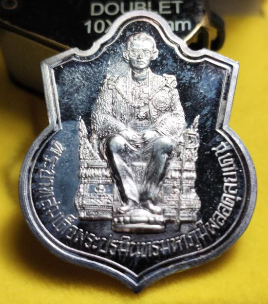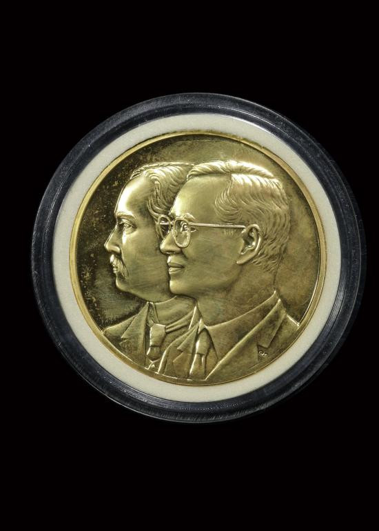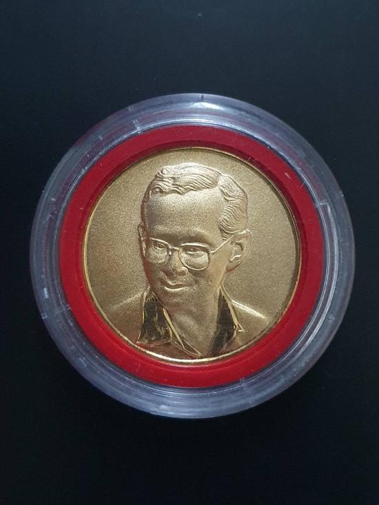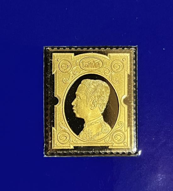 เหรียญแสตมป์ในหลวง ร.9 เนื้อเงินบริสุทธิ์ ชุบทองคำสวิส 999.9 ที่ระลึกในงานฉลองศิริราชสมบัติครบ 50 ปี |