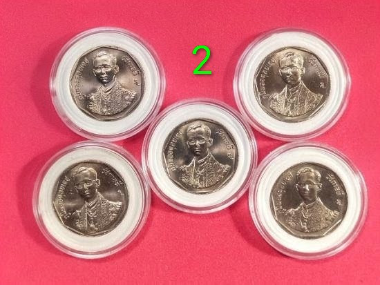 รับ 5 เหรียญ 2 บาท ปี 2539 กาญจนาภิเษก ไม่ผ่านใช้ UNC |