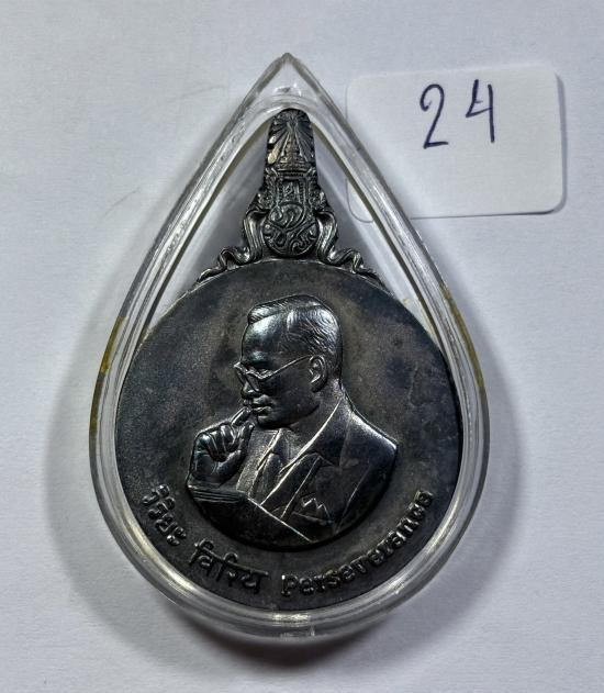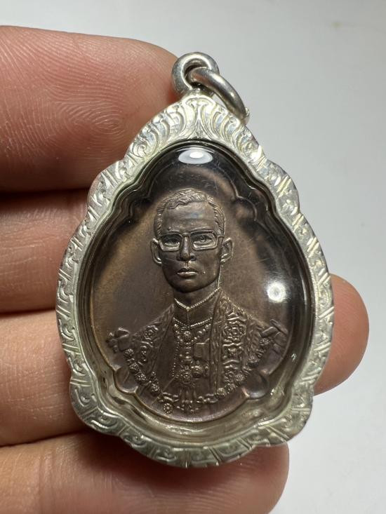 เหรียญ ร9 เงิน ปัญจภาคีหลังพระนิรันตราย เลี่ยมทอง |