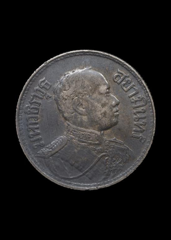 เหรียญพระจุลจอมเกล้าเจ้าอยู่หัว สมเด็จพระปรมินทรมหาจุฬาลงกรณ์ รัชกาลที่5 กรุงสยาม บาทหนึ่ง มีตอกโค๊ต |
