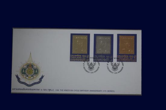 แสตมป์สามกษัตริย์ชุด ทอง เงิน นาค ที่ระลึกในหลวงครบ 6 รอบ |