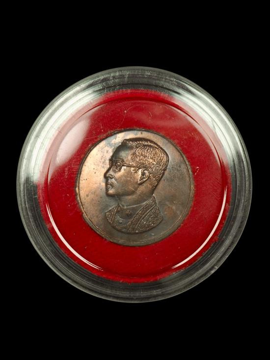 เหรียญในหลวง รัชกาลที่ 9 รุ่นคุ้มเกล้า สร้าง พศ 2522 เนื้อนวะโลหะ ในตลับพลาสติกกลมเดิมๆ |