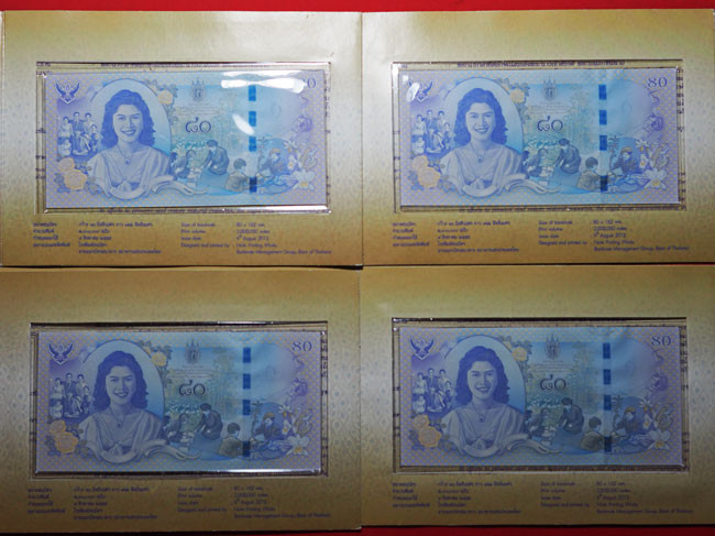 ***ชุด 4 ใบ***ธนบัตรที่ระลึก 80 บาท สมเด็จพระนางเจ้าฯ พระบรมราชินีนาถในรัชกาลที่ 9 เฉลิมพระชนมพรรษา 80 พรรษา พร้อมซองเดิม เลขเรียง*** |