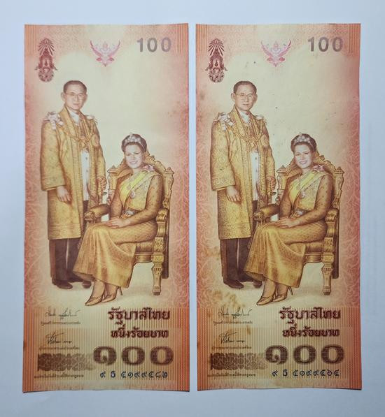 ธนบัตร 100 บาท เลขเรียง 10 ฉบับ ไม่ผ่านใช้ |