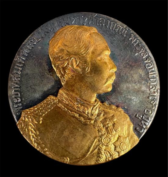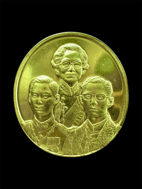 เหรียญรัชกาลที่ 5 เหรียญเสด็จประพาสยุโรป รุ่น 90 ปี ร.พ.สมเด็จ ณ ศรีราชา ปี 35 เนื้อสามกษัตริย์ (ทองคำ-เงิน-ทองแดง พร้อมกล่องเดิม) สภาพสวยเดิม |