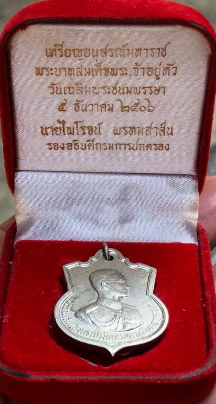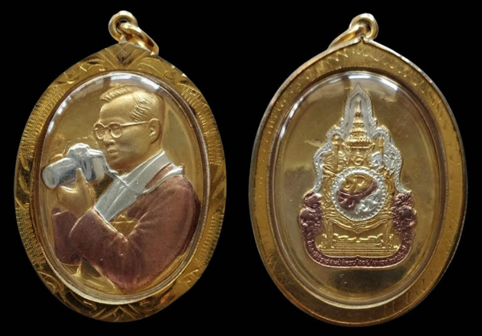 เหรียญที่ระลึก ร.9 พระราชพิธีฉลองสิริราชสมบัติครบ60ปี ทรงกล้องฉายภาพ เนื้อสามกษัตริย์ ปี2549 กรอบทองเลเซอร์ |
