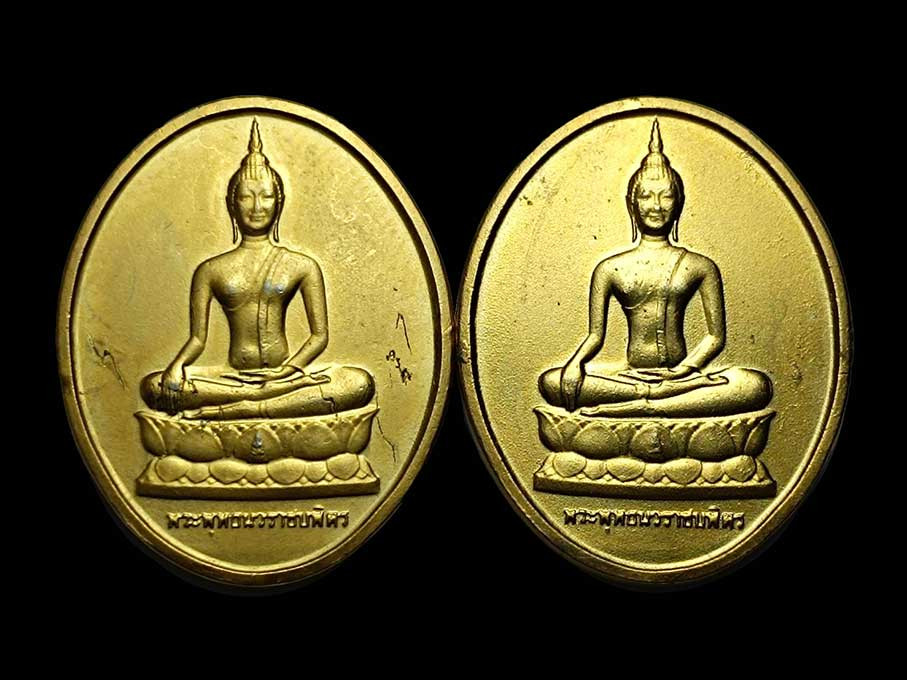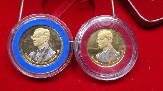 เหรียญที่ระลึกในหลวงรัชกาลที่ 9 หลังเขาชีจรรย์ กรมธนารักษ์ จัดสร้าง ปี 2538 เหรียญแท้ทำกะหลั่ยทองเงา/3 กษัตริย์ สภาพสวยมาก ทั้งหมด2เหรียญ+กลองเดิม |
