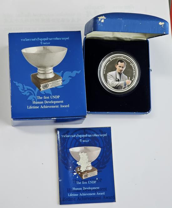 เหรียญเงินขัดเงา UNDP รางวัลความสำเร็จสูงสุดด้านการพัฒนามนุษย์ ปี2549 สภาพสวยกล่องเดิมๆเก่าเก็บ |