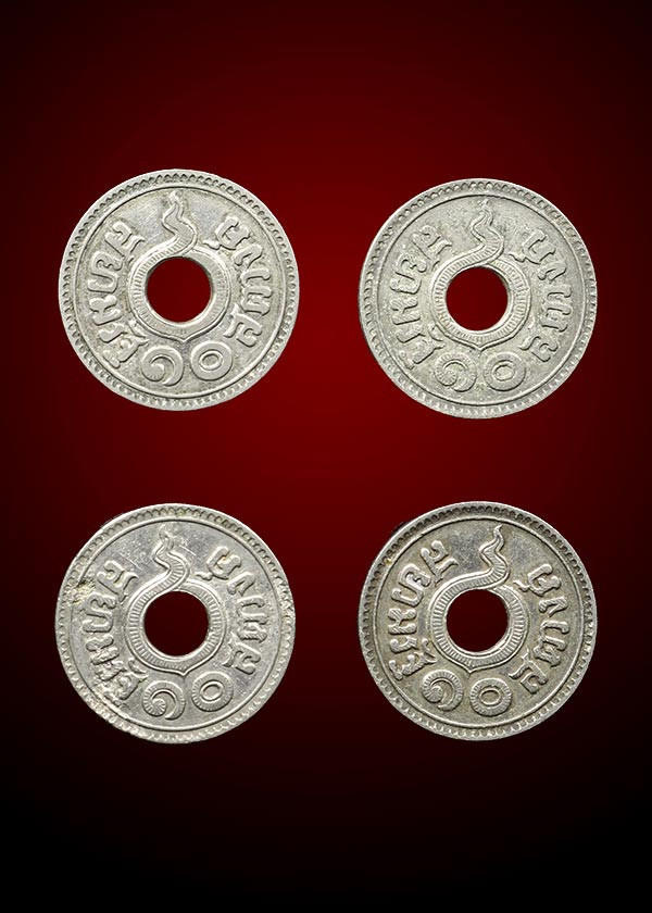 เหรียญ ๑๐ สตางค์ พ.ศ.๒๔๘๐ เนื้อเงิน น้ำหนัก 13.98 กรัม (จำนวน 4 เหรียญ) |