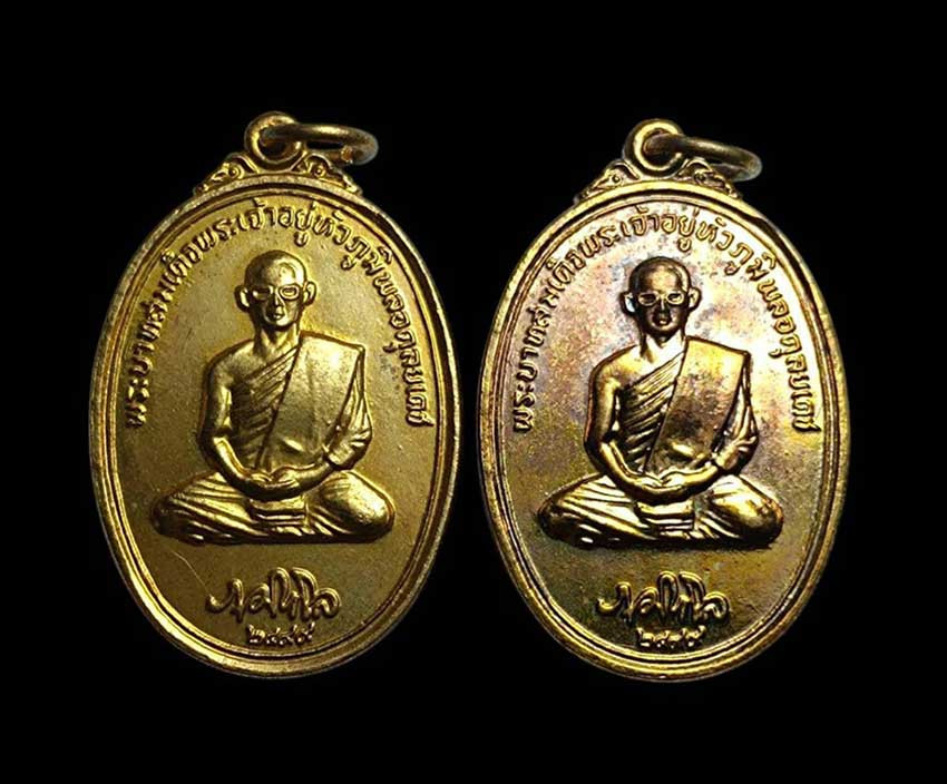 จำนวน 2 องค์ เหรียญในหลวงรัชการที่ 9 ทรงผนวช โดยเสด็จพระราชดำเนินถวายผ้าพระกฐิน ณ วัดชุมพลนิกายาราม เนื้อทองแดงกระไหล่ทอง ปี พ.ศ.2520 จ.อยุธยา |