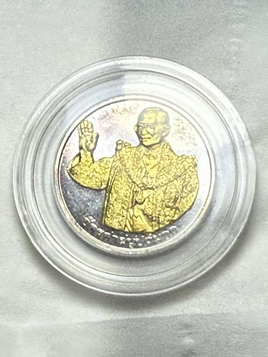 เหรียญในหลวงรัชกาลที่ 9 ทรงยินดี เนื้อเงินหน้าทองคำ ปี 2549 ครับ |