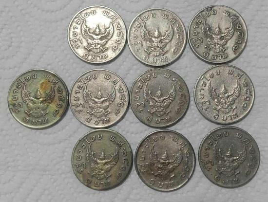 เหรียญ 1 บาท หลังครุฑ พ.ศ.2517 ในสมัยรัชกาลที่ 9 พกติดตัวไว้เป็นมงคล เหรียญสภาพผ่านการใช้งาน ผิวเดิม จำนวน 10 เหรียญ ครับ |