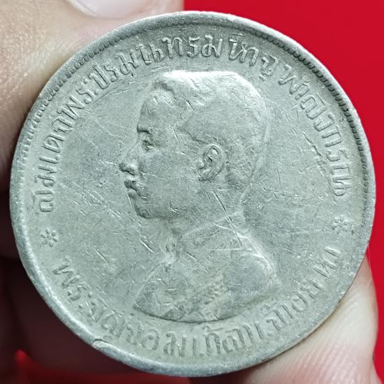 เหรียญบาทหนึ่ง ร.5 หลังตราแผ่นดิน [ เนื้อเงินแท้ห่วงเชื่อม ] เก่าถือว่าสมบูรณ์สวยเดิมๆ แดง 500 |