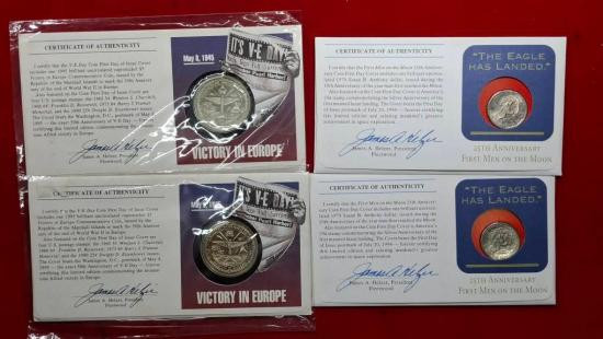 เหรีญที่ระลึก 5 ดอลลาร์+1ดอลล่าร์ พร้อมแพ็คเก็จเดิม รวม4เหรียญ |