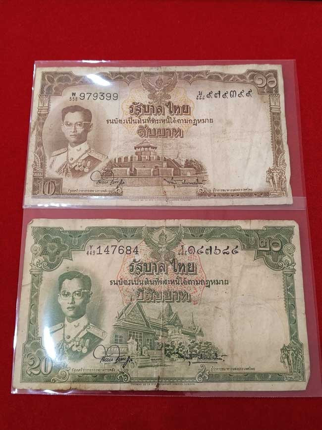 ธนบัตร 10 บาท ทรงม้า จำนวน 5 ฉบับ และ ธนบัตรที่ระลึกเฉลิมพระเกียรติพระบาทสมเด็จพระเจ้าอยู่หัว 2 ฉบับ |