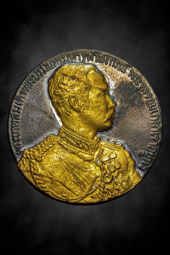 เหรียญเงินหน้ากากทองคำแท้ พระจุลจอมเกล้า ร.5 ทรงผนวช ออกวัดอัมพวัน นนทบุรี ปี 2539 (วัดใจเอาแค่ ราคาเงินและหน้ากากทองคำพอค่ะ ลอกหน้ากากไปขายน่าจะเป็นพันครับ) น้ำหนัก 12.7 กรัม |
