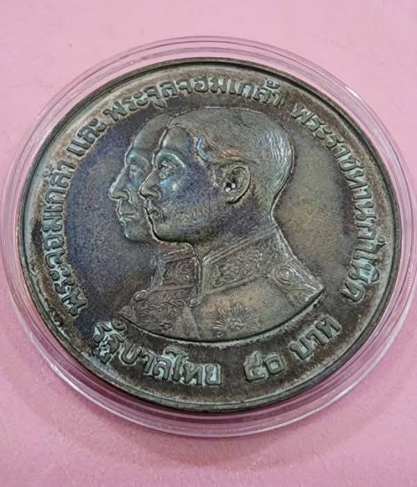 เหรียญ ร.5 เนื้อ3กษัตรย์ โรงพยาบาลสมเด็จ ณ ศรีราชา ปี2535 พร้อมกล่องเดิมๆ หลวงปู่เริ่มร่วมปลุกเสก |