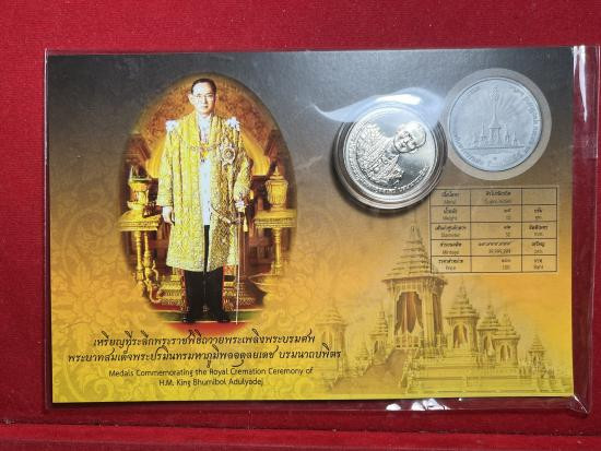 ร.9 / เหรียญที่ระลึกพระราชพิธีถวายพระเพลิงพระบรมศพพระบาทสมเด็จพระปรมินทรมหาภูมิพลอดุลยเดช เนื้อคิวโปรนิกเกิ้ล พร้อมซองเดิม |