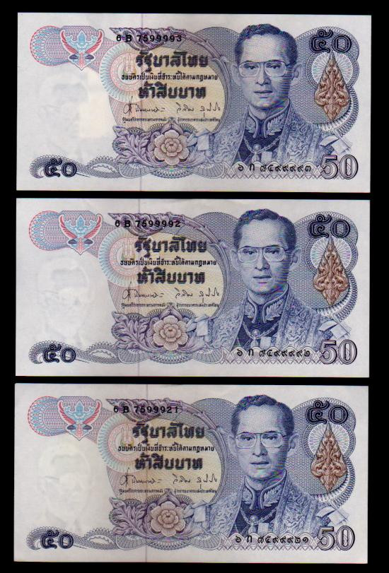 ## ธนบัตร 50 บาท ## 9999 ## 3 ฉบับ ## ไม่ผ่านการใช้ |