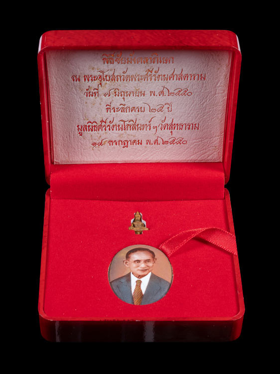 88888 ล็อกเก็ต พระบรมรูปในหลวง ร.9 พิมพ์ใหญ่ ฉลอง 25 ปี มูลนิธิศรีรัตนโกสินทร์ วัดสุทธาราม กรุงเทพมหานคร ปี 2550 ด้านหลังแผ่นนาก บรรจุมวลสารจิตรลดา ตอกโค้ด หมายเลข 261 (เฉพาะผู้มีอุปการะคุณ) สวย 88888 |