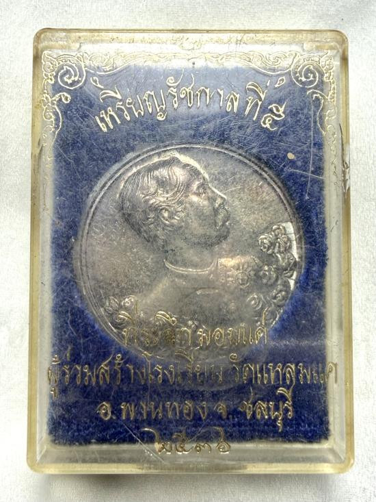 รัชกาลที่ 5 เนื้อเงิน ออกวัดแหลมแค ชลบุรี ปี 2536 พร้อมกล่องครับ |