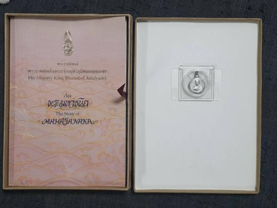 เหรียญมหาชนก พิมพ์เล็ก เนื้อเงิน สวยๆเดิมๆแถมหนังสือตามรูป |