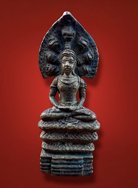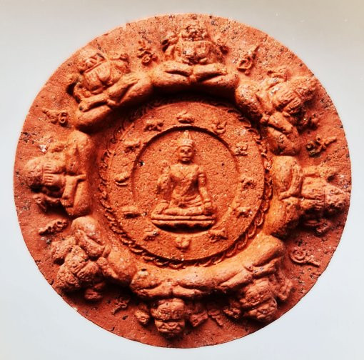 พระพุทธสิหิงค์หลังราหูทรงเครื่อง พิธีศาลหลักเมืองนครศรีฯ รุ่นแรก เนื้อแดง ปี 2530 |