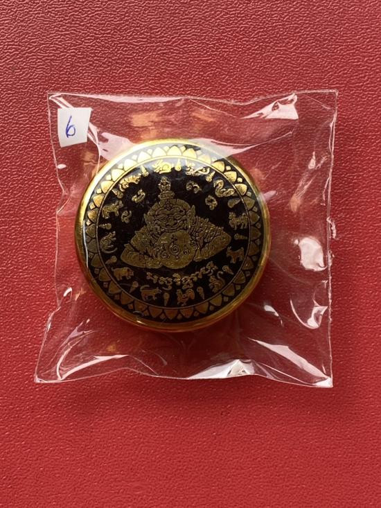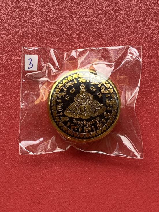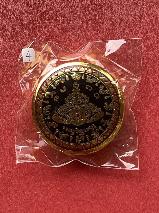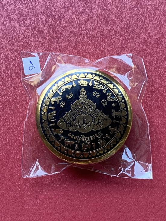 เคาะเดียวแดง สีผึ้งพระราหู รุ่น มงคลจักรวาล เนื้อ โลหะชุบทองลงยาสีดำขอบสีแดง ขนาด3.2ซม |