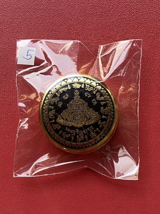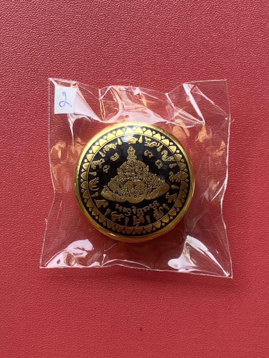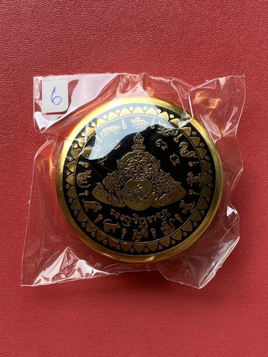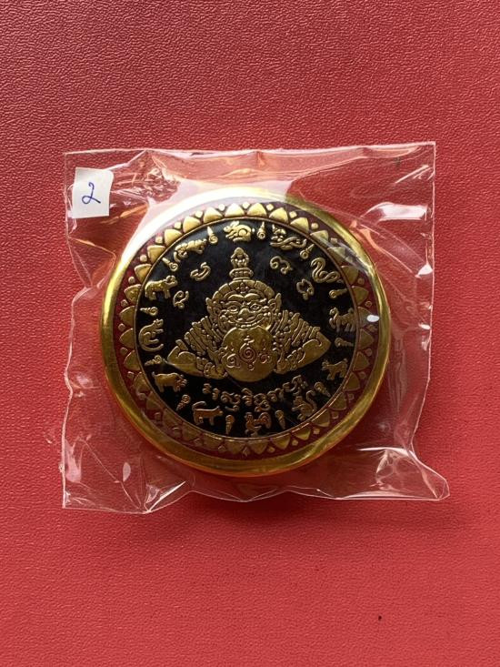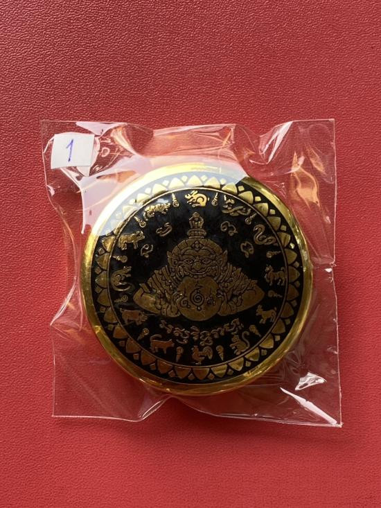 เคาะเดียวแดง สีผึ้งพระราหู รุ่น มงคลจักรวาล เนื้อ โลหะชุบทองลงยาสีดำขอบสีดำ ขนาด3.2ซม |