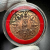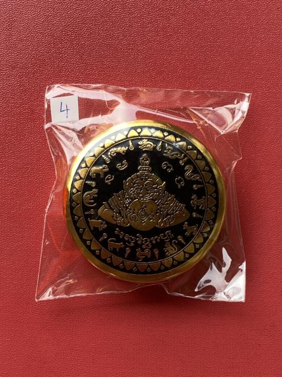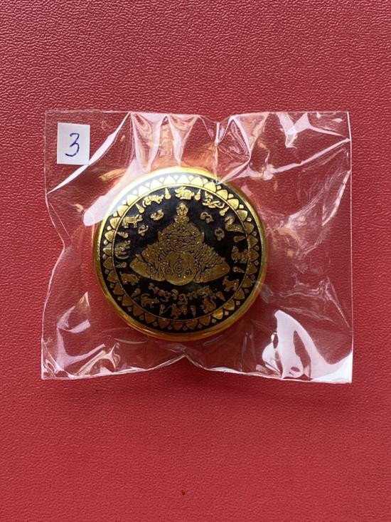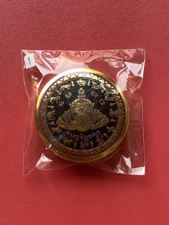 เคาะเดียวแดง สีผึ้งพระราหู รุ่น มงคลจักรวาล เนื้อ โลหะชุบทองลงยาสีดำขอบสีแดง ขนาด3.2ซม |