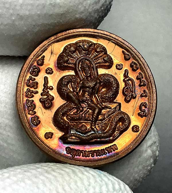 พระนาคปรกใบมะขาม"รุ่นแรก"องค์พ่อจตุคามรามเทพ ปี ๒๕๔๓ ..ไม่มีเส้นคอ นื้อทองแดงผิวไฟ |