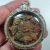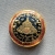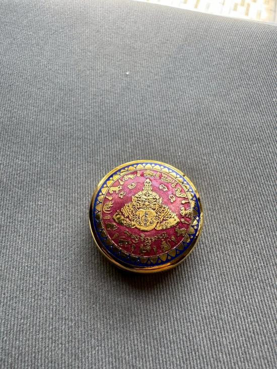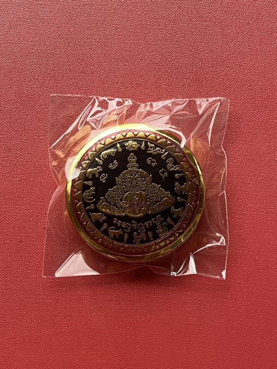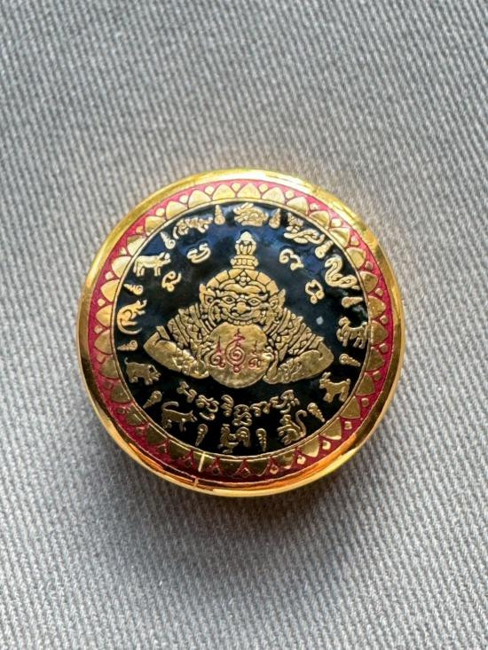 เคาะเดียวแดง สีผึ้งพระราหู รุ่น มงคลจักรวาล เนื้อ โลหะชุบทองลงยาดำขอบแดง ขนาด3.2ซม |