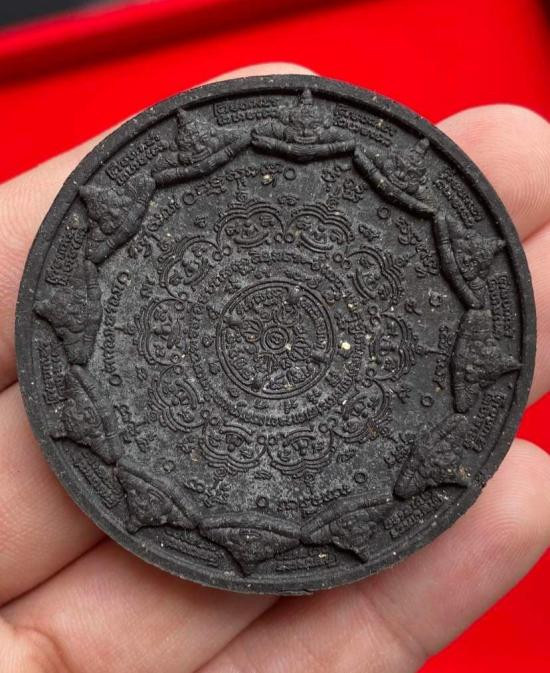 เคาะเดียวแดง สีผึ้งพระราหู รุ่น มงคลจักรวาล เนื้อ โลหะชุบทองลงยาดำขอบดำ ขนาด5.5ซม |