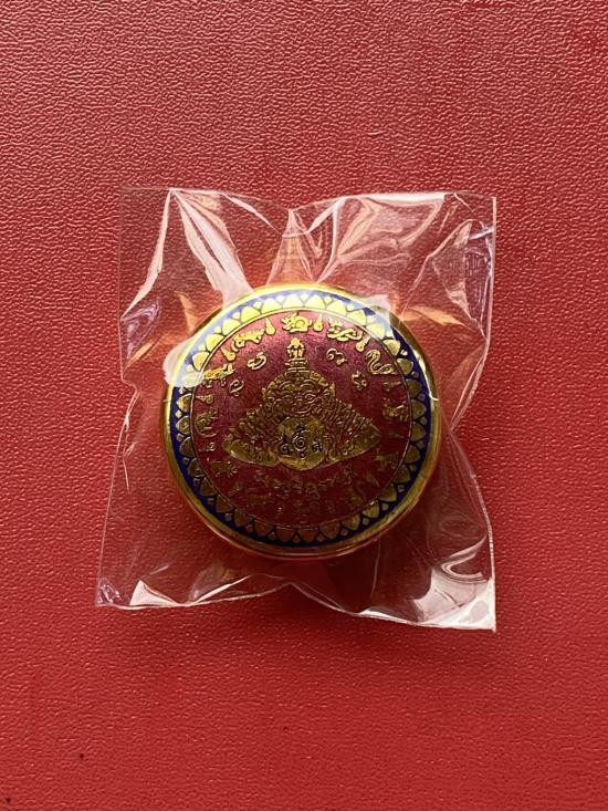 เคาะเดียวแดง สีผึ้งพระราหู รุ่น มงคลจักรวาล เนื้อ โลหะชุบทองลงยาแดงขอบน้ำเงิน ขนาด3.2ซม แดง 100 |