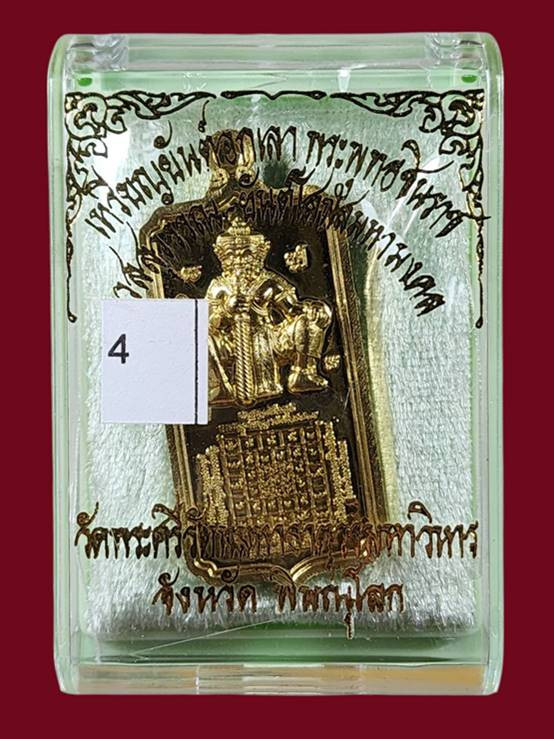 เหรียญยันต์อกเลา ท้าวเวสสุสรรณ ยันต์โสฬสมงคล รุ่นแรก ท้าวเวสสุวรรณ เนื้อทองเหลือง ปี2563 วัดพระศรีรัตนมหาธาตุ พิษณุโลก หลังยันต์อกเลา พร้อมกล่อง 4