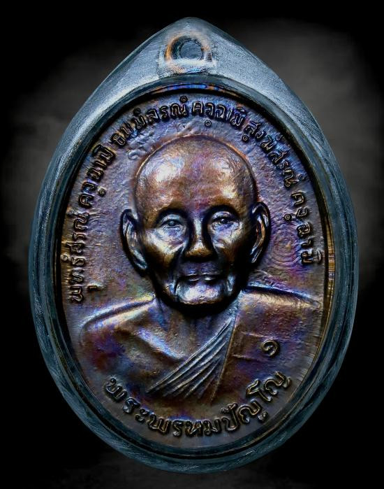 เคาะเดียวแดง หลวงปู่บุดดา รุ่น กฐิน64 เนื้อ ทองแดงรมดำหน้ากากเงิน แจกสะพานบุญ