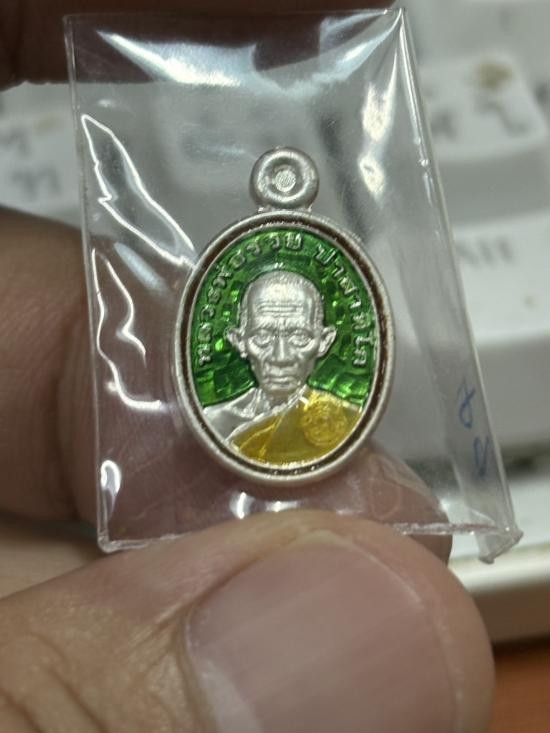 HOT!!! เม็ดแตง รวย รวย เฮง เฮง ปี 2560 เนื้อเงินลงยาสีเขียวเหนี่ยวทรัพย์ เลขโค๊ด 42 หลวงพ่อรวย วัดตะโก เคาะเดียว