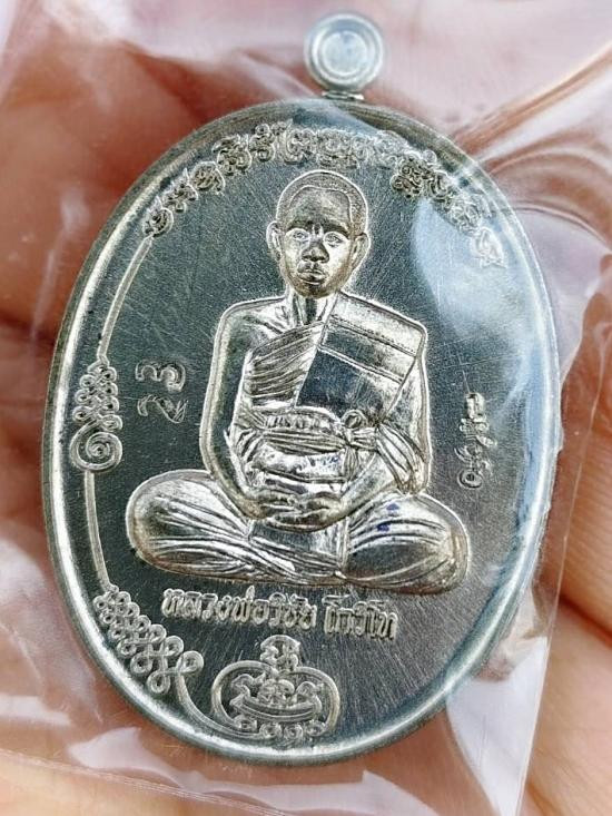 HOT!!! เหรียญเสมาไตรมาส 5995 เนื้ออัลป้าก้า ปี 2559 บล๊อกเงิน เลขโค๊ด 16013 หลวงพ่อรวย วัดตะโก เคาะเดียว