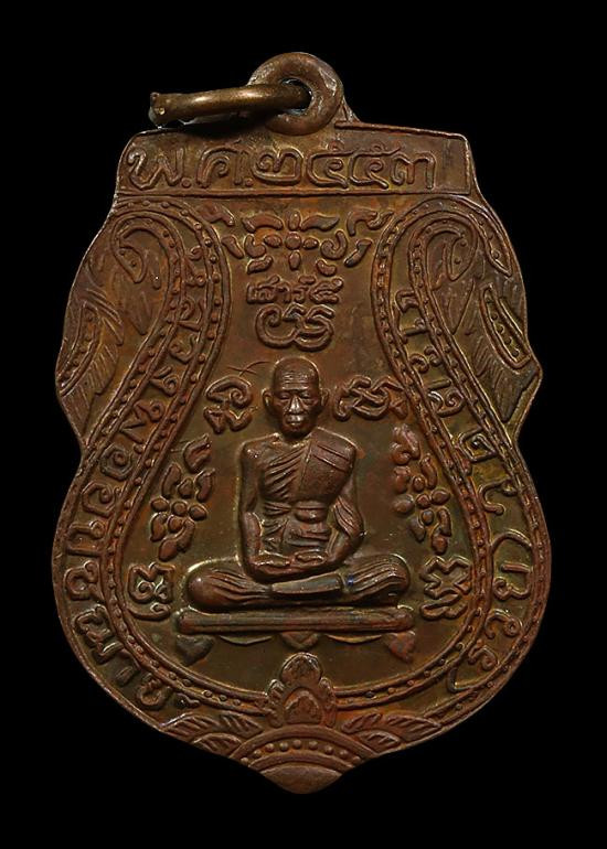 วัดใจเคาะเดียวแดง เหรียญ รุ่น 3 เหรียญกนกข้างหลวงพ่อพาน วัดโป่งกะสัง อ.กุยบุรี จ.ประจวบคีรีขันธ์ เนื้อทองแดงรมดำ
