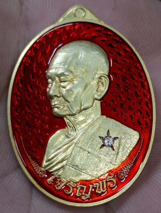 หลวงพ่อพัฒน์ ปุญฺญกาโม วัดห้วยด้วน นครสวรรค์ เหรียญ ราชาพยัคฆ์ เนื้ออัลปาก้า ลงยา 2 สี พื้นแดง ขอบแดง ลงยาจีวร (รายการที่ 6) |