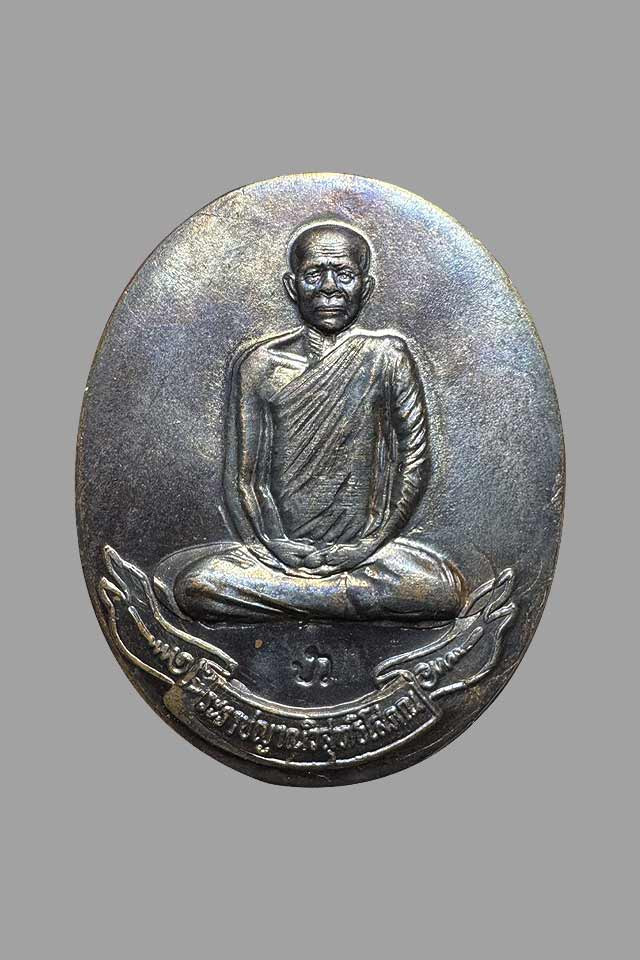 เหรียญนั่งพานชนะมาร ล.พ.จรัญ วัดอัมพวัน "เนื้อเงินลงยา4สี" ตอกกรรมการ หมายเลข#๙๒ กล่องเดิม |