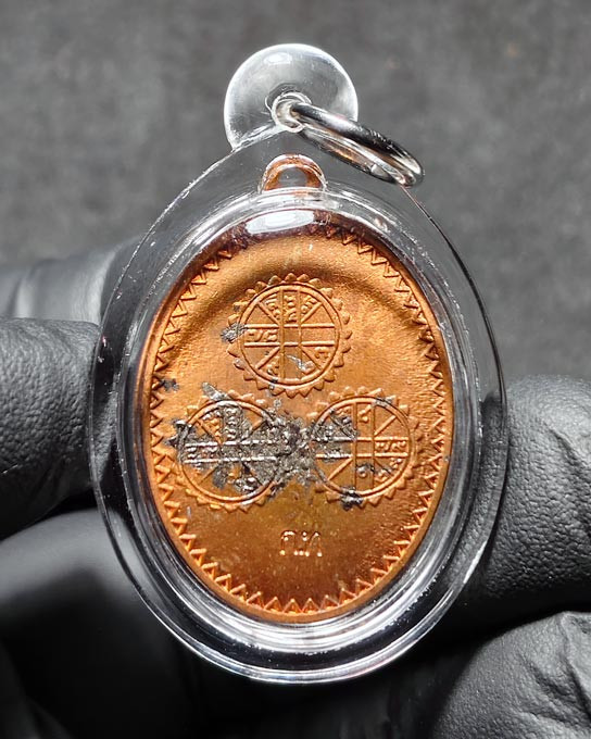 ปรกใบมะขาม หลวงปู่ผาด วัดบ้านกรวด สุรินทร์ ปี2550 เนื้อทองแดง |