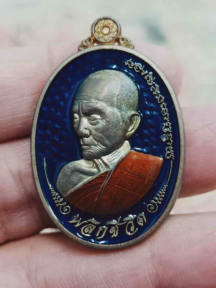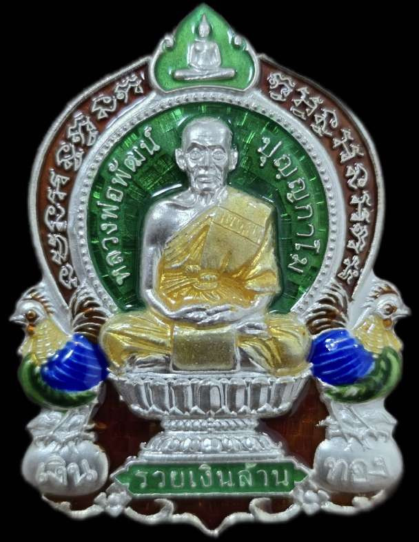 เหรียญหลวงพ่อรวย วัดตะโก อยุธยา รุ่นไตรมาส รวยทรัพย์แสนล้าน เนื้อเงินลง ลงยาน้ำเงิน |
