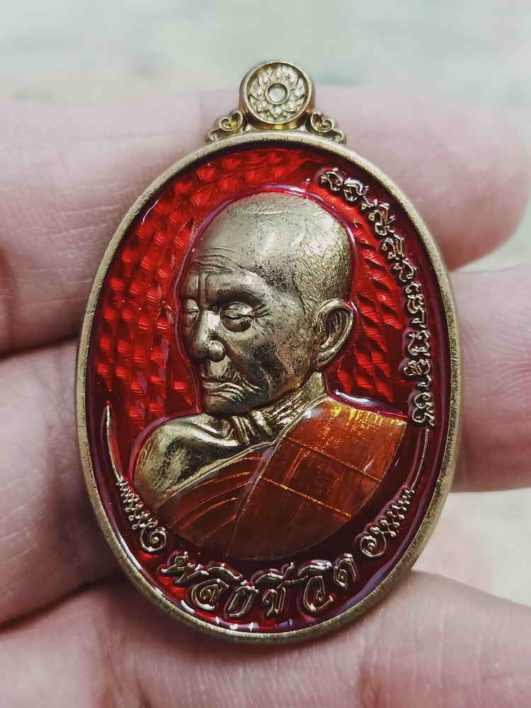 เหรียญหลวงพ่อรวย วัดตะโก รุ่นเลื่อนสมณศักดิ์ ปี59 เนื้อทองแดงกะไหล่ทองลงยา สภาพสวย เลข 5687 |