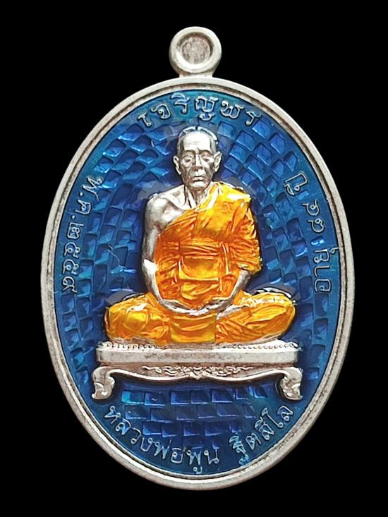 เหรียญรูปไข่ หลวงพ่อรวย วัดตะโก จ.อยุธยา เนื้อเงินลงยา |