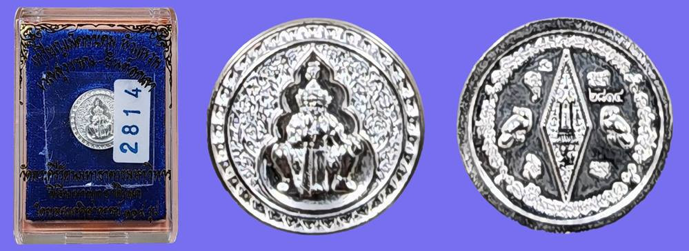 เหรียญห่วงเชื่อมโบราณท้าวมหาพรหม รุ่นเจ้าสัวพันล้าน(บอย ท่าพระจันทร์) เนื้อชนวน โค๊ตกรรมการ No.๑๒๘ พร้อมกล่องเดิม (สร้าง 699 เหรียญ) |