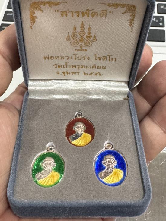 เหรียญเม็ดแตง เนื้อเงินลงยาสี 3 สี น้ำหนักเงินรวม 12.9 กรัม หลวงพ่อโปร่ง วัดถ้ำพรุตะเคียน ชุมพร ตอกหมายเลข 92 |